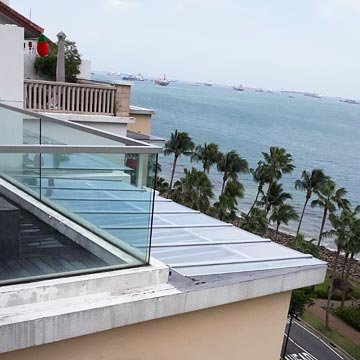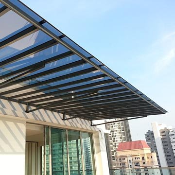2. Glass Awning: Elegant and transparent, glass awnings offer a sophisticated solution for shielding against sunlight without compromising visibility.